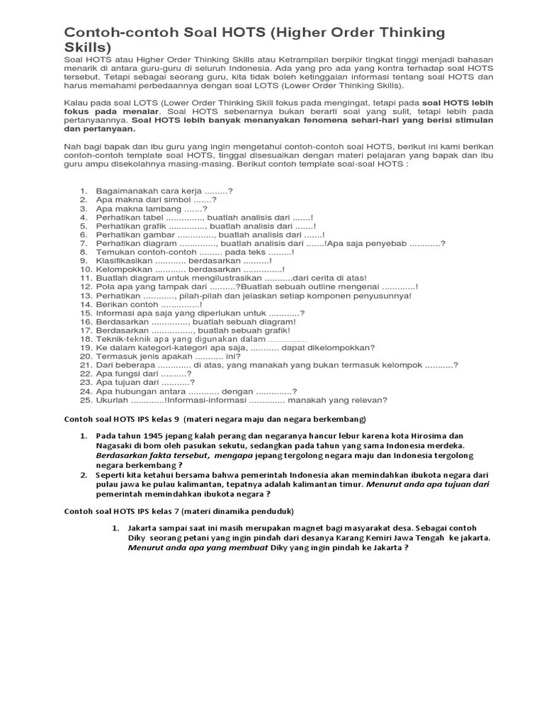 Soal Hots Ips Kelas 9 - Kisi Kisi Ips Uas Kelas Vii Viii Dan Ix : Essay 1 semester ips 9 kelas soal contoh.